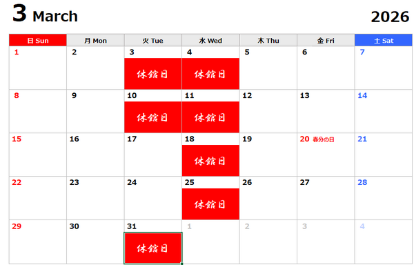 休館日のお知らせ(1月~3月)